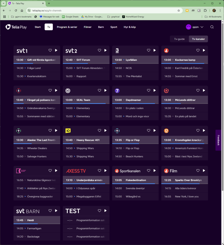 - Public Service: SVT1, SVT2, Kunskapskanalen och SVT Barn