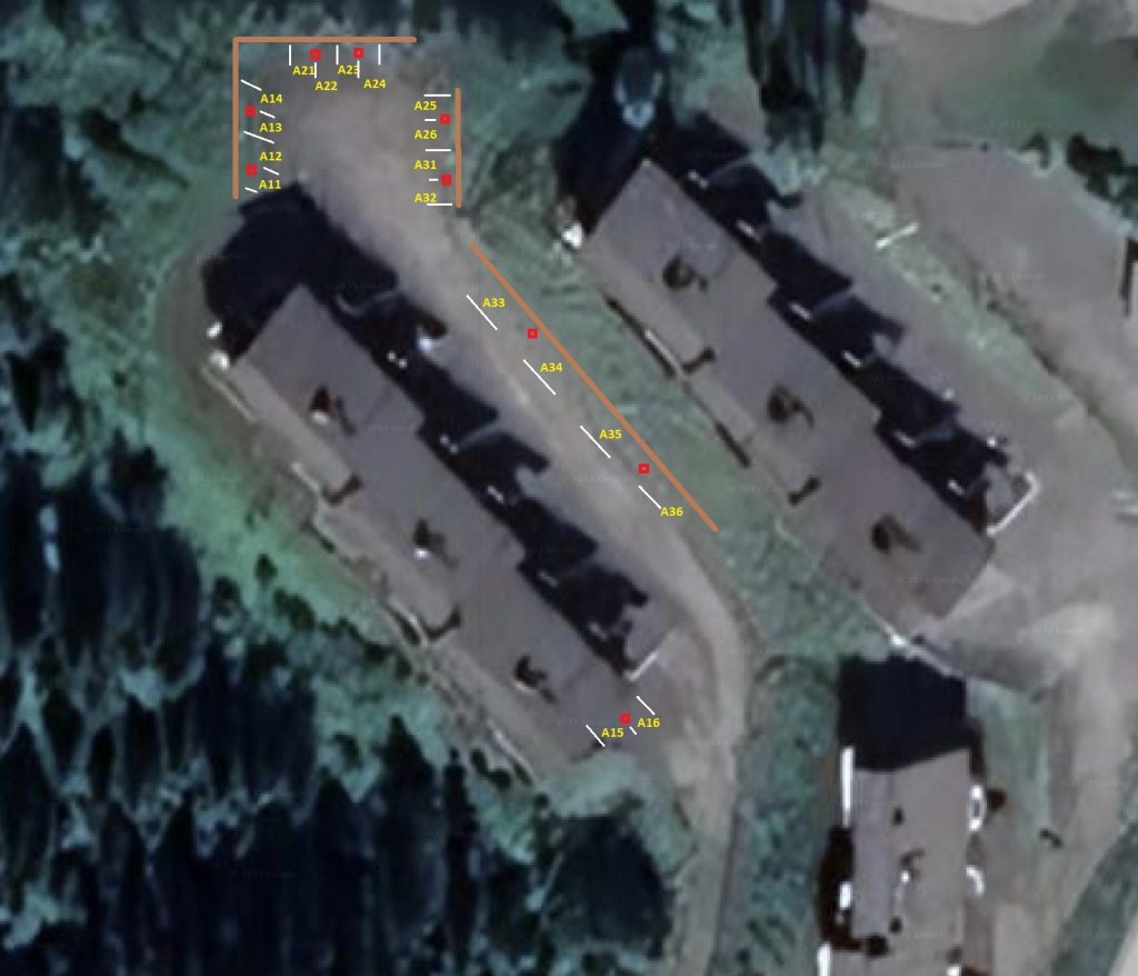 Nu har de som jobbar med laddstolpsprojektet tagit fram en fördelning av p- och laddboxsplatser. Om det är svårt att se de gula lägenhetsnumren, så försök att med webbläsarens hjälp zooma in bilden.